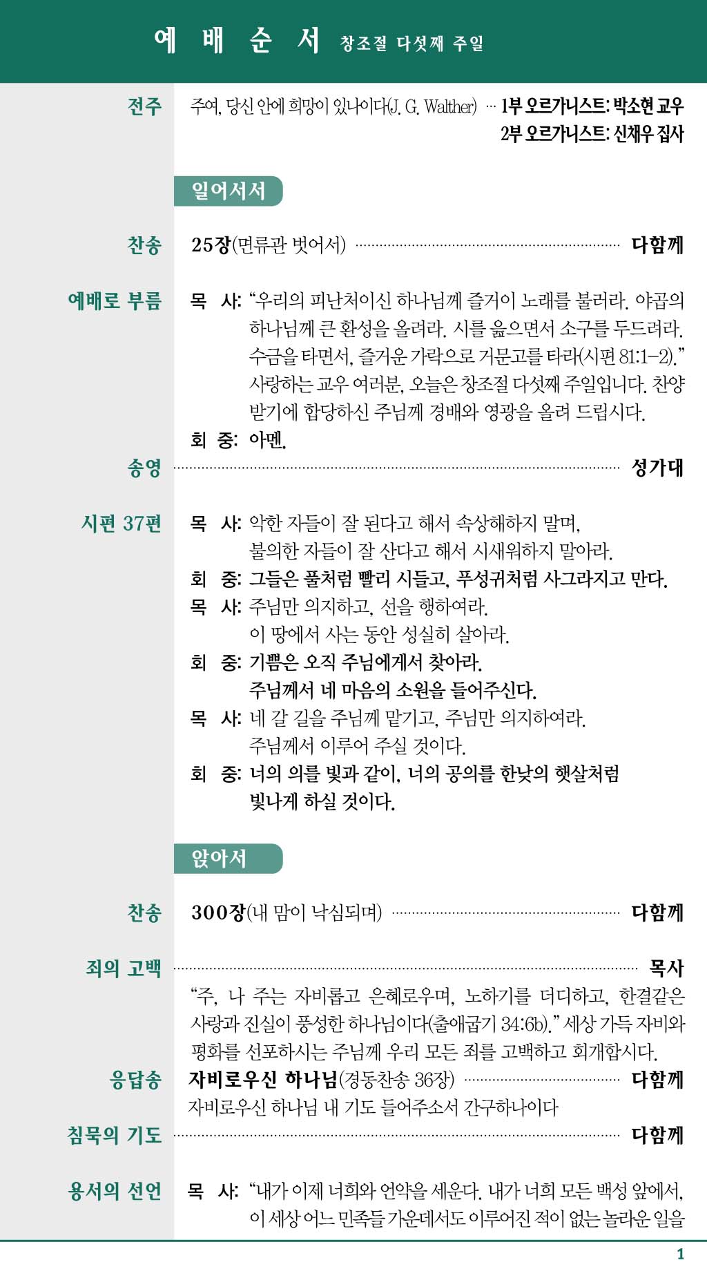 1315 | 2025-10-05 | 창조절 다섯째 주일 | 주님은 희망 | 임영섭 목사 |