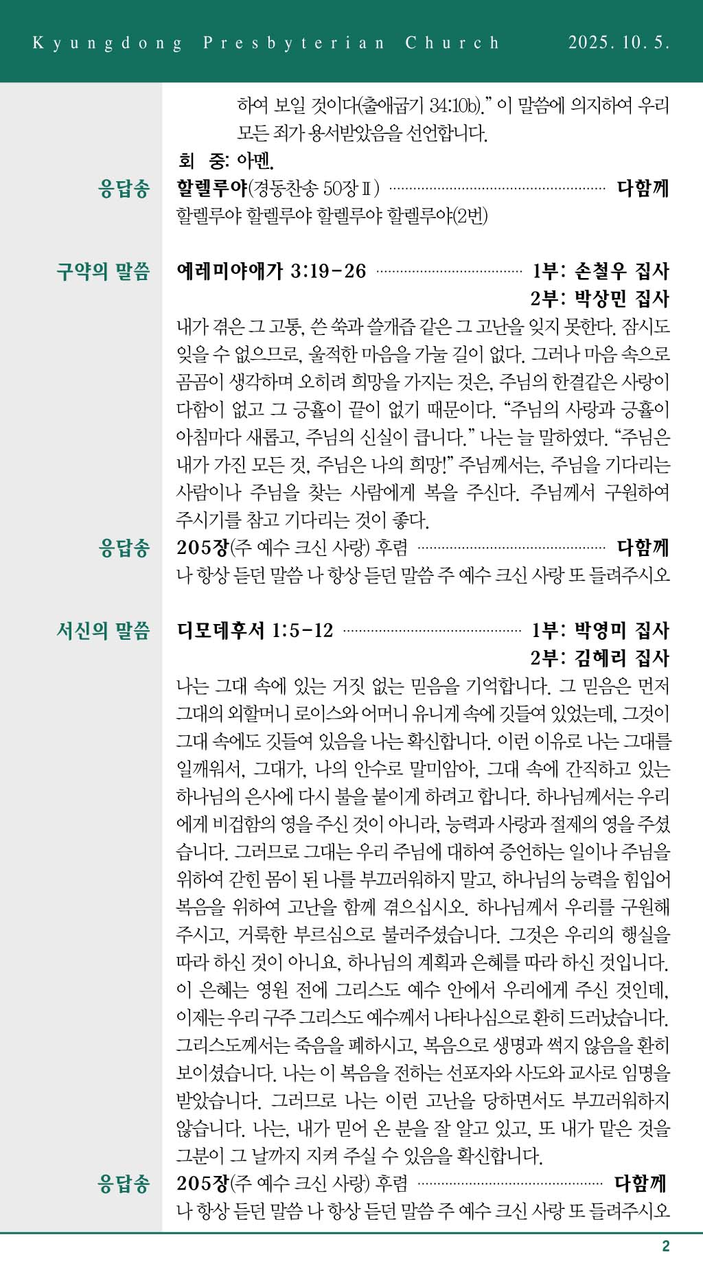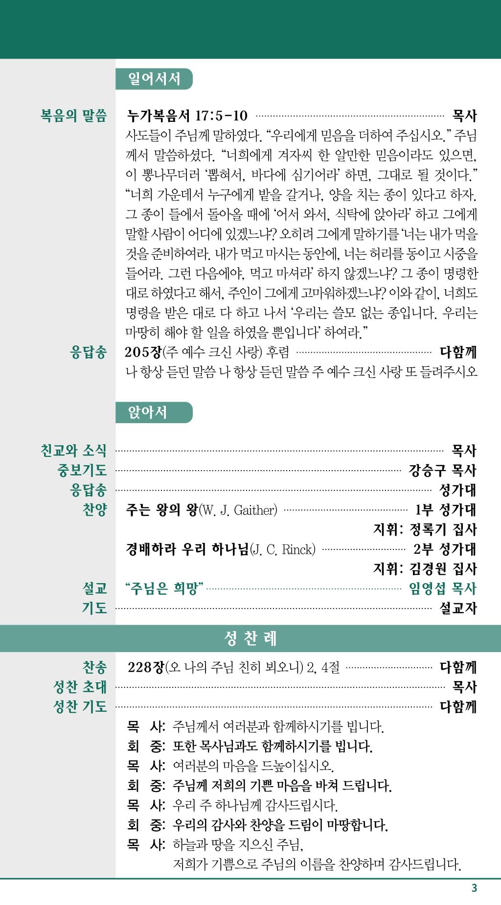 성경구절 | 예레미야애가 3:19-26 / 디모데후서 1:5-12 / 누가복음서 17:5-10 |