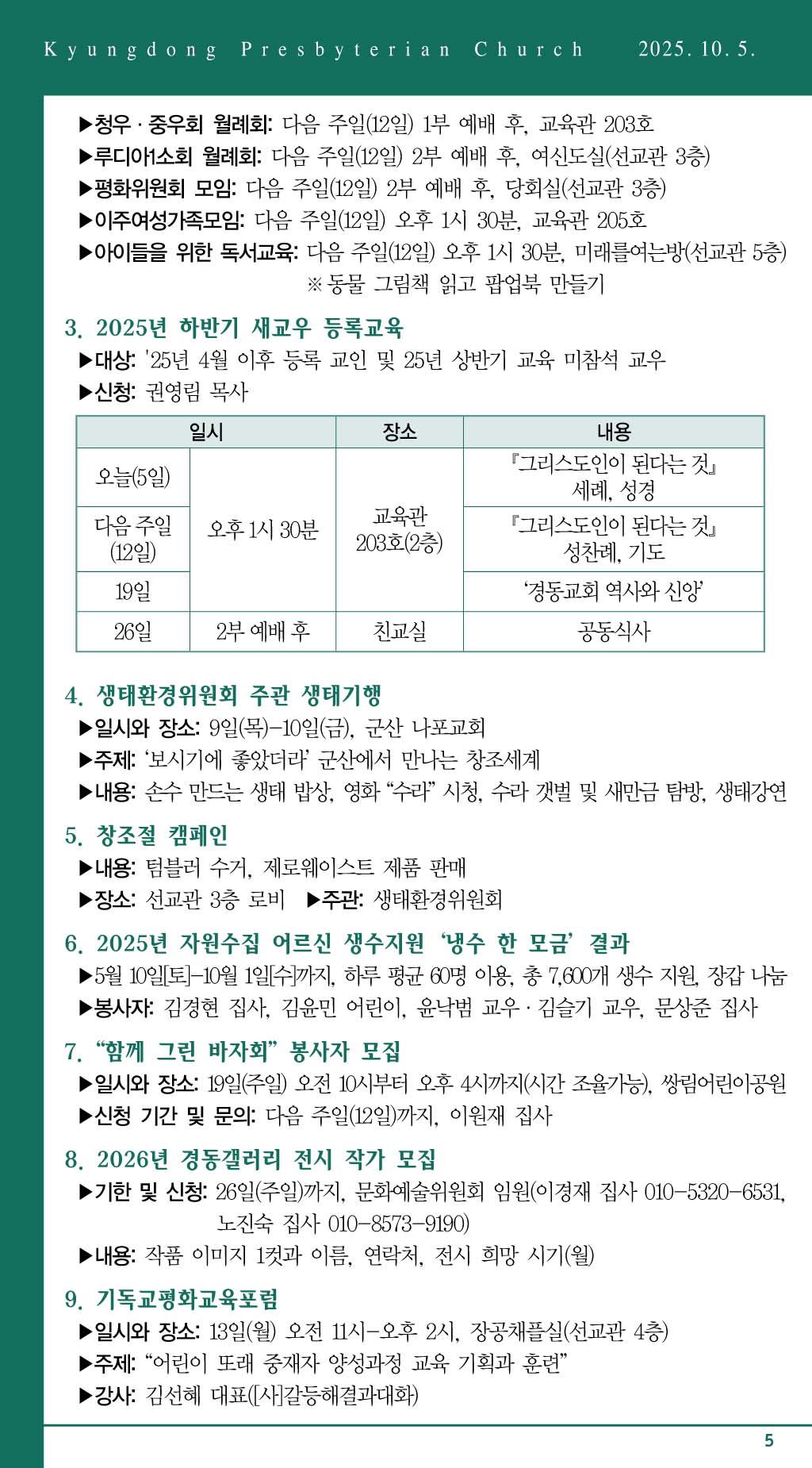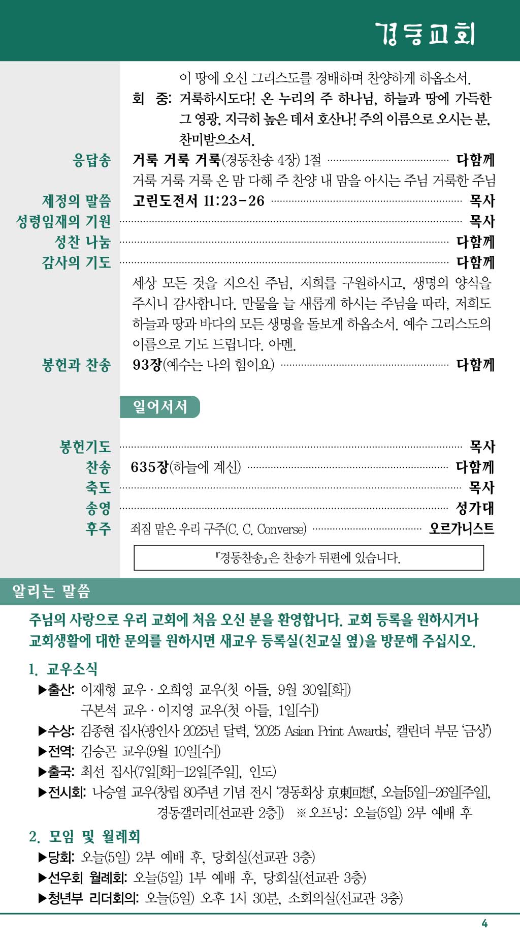 1314 | 2025-09-28 | 창조절 넷째 주일 | 경계 없는 공존 | 임영섭 목사 |