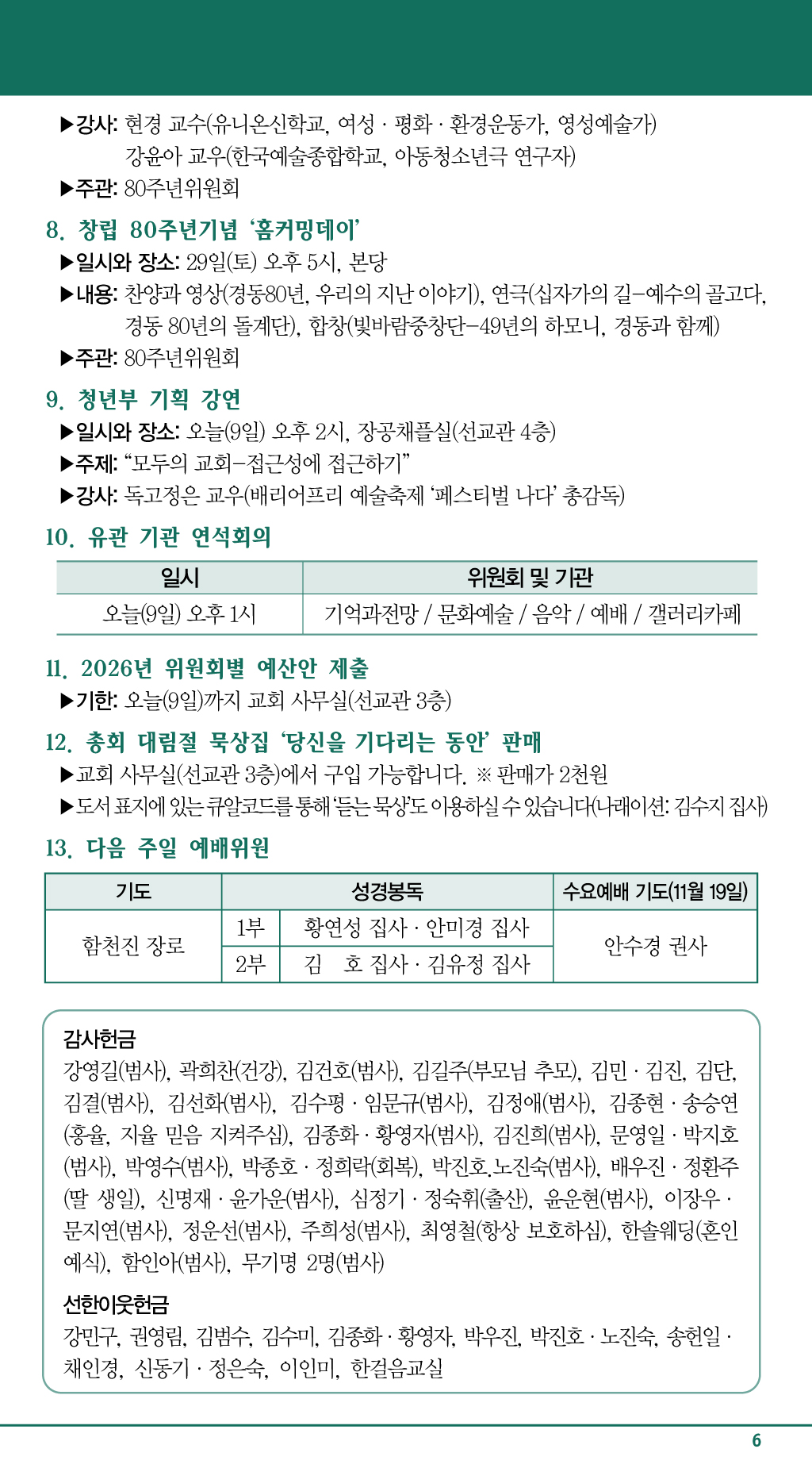 | 1320 | 2025-11-09 | 창조절 열째 주일 | 나를 내어 드립시다 | 타키사와 미츠구 목사 |