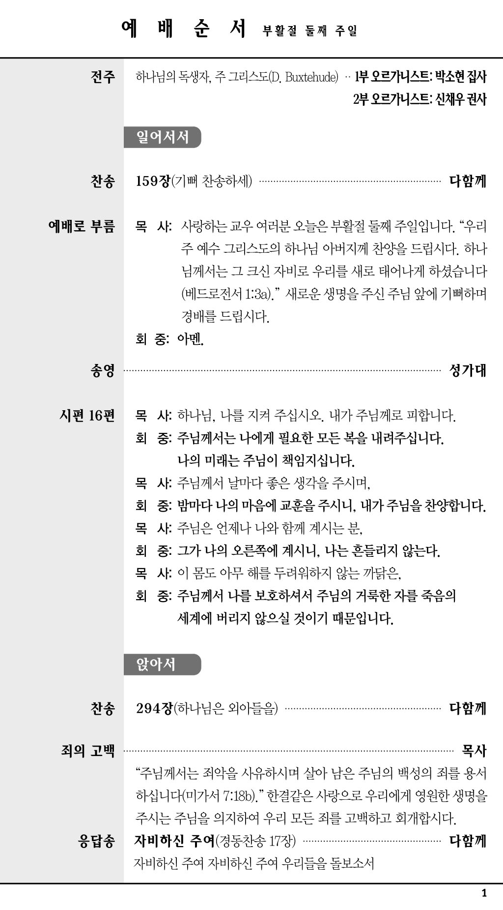 | 전주 | 하나님의 독생자, 주 그리스도(D. Buxtehude) |