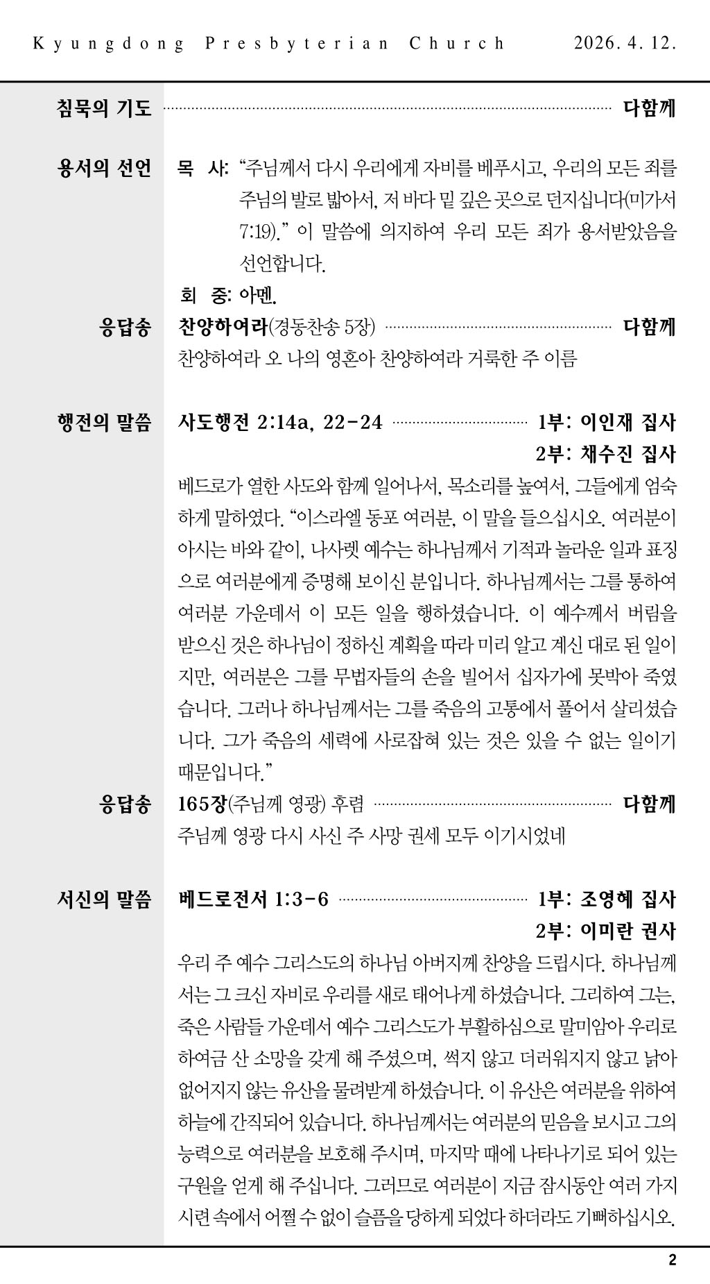 | 1342 | 2026-04-12 | 부활절 둘째 주일 | 생명의 씨앗 | 임영섭 목사 |
