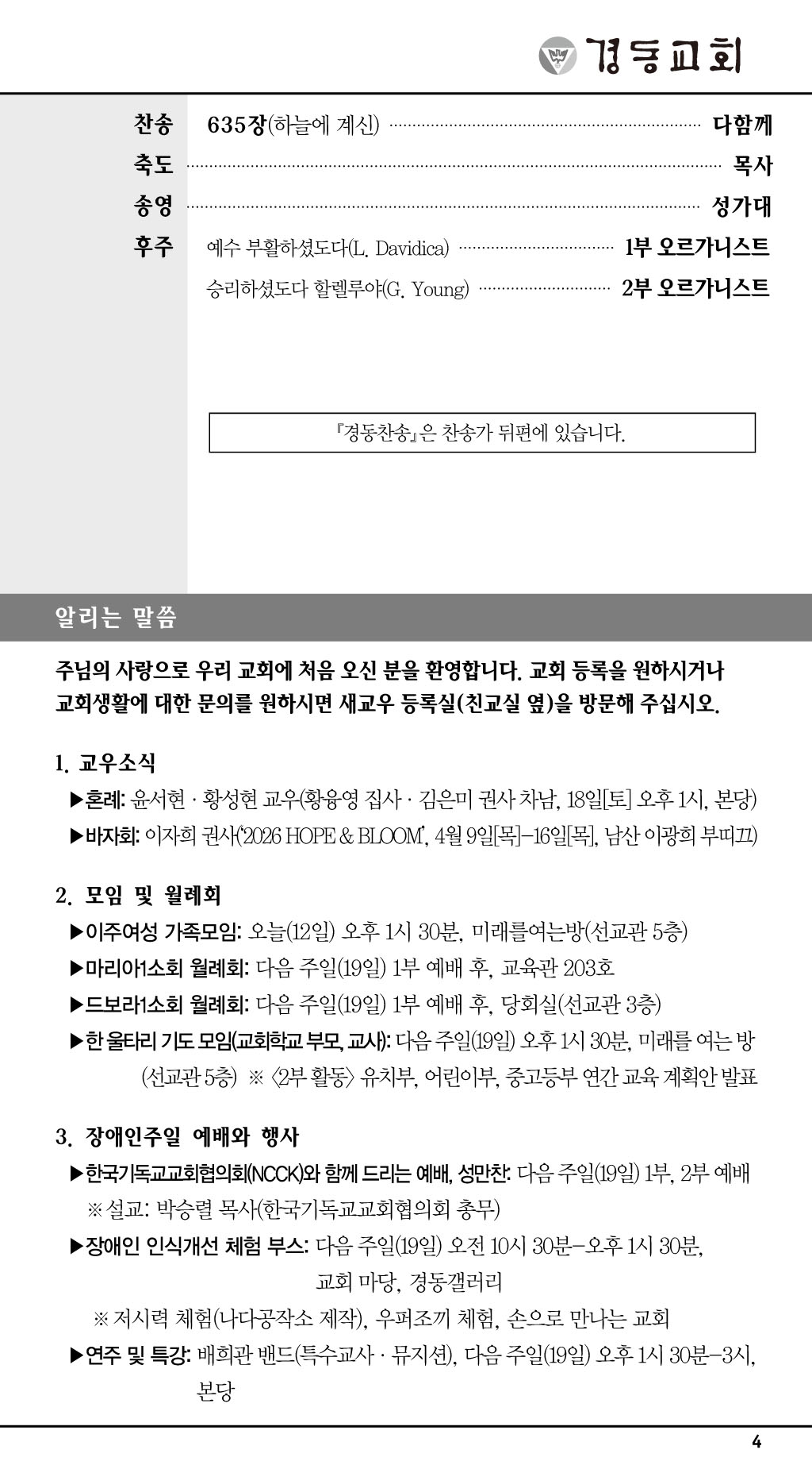 | 1328 | 2026-01-04 | 성탄절 둘째 주일 / 신년주일 | 마음을 드높이십시오 | 임영섭 목사 |