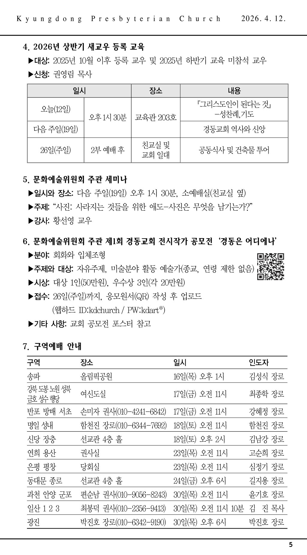| 1339 | 2026-03-22 | 사순절 다섯째 주일 | 밖으로 부름받은 사람들 | 임영섭 목사 |